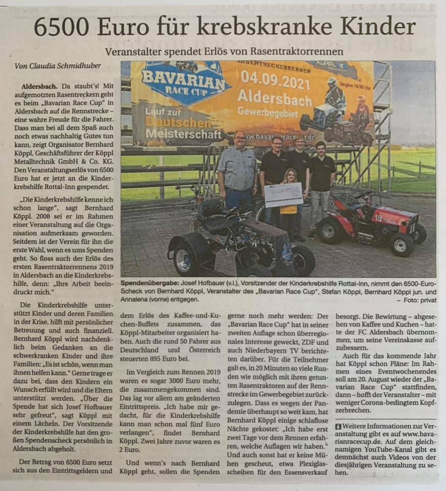 Die Eintrittsgelder, sowie der Erlös des Kuchenverkaufs spendete die Firma Köppl Metalltechnik GmbH & Co.KG an die Kinderkrebshilfe Rottal/Inn