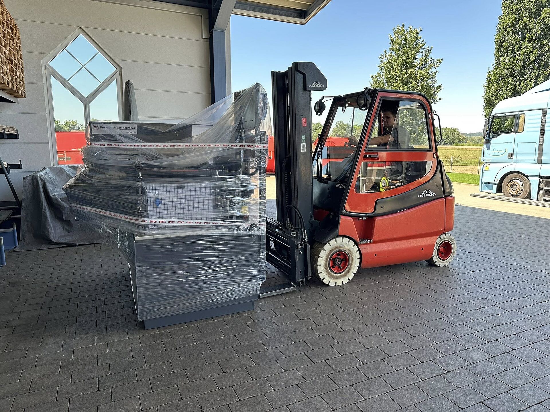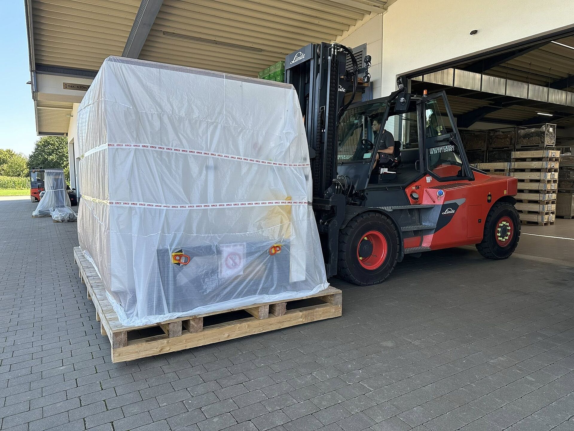 Erst wenn die 10 Tonnen HighTech den richtigen Platz in der Halle gefunden hat, kehrt wieder Ruhe ein!