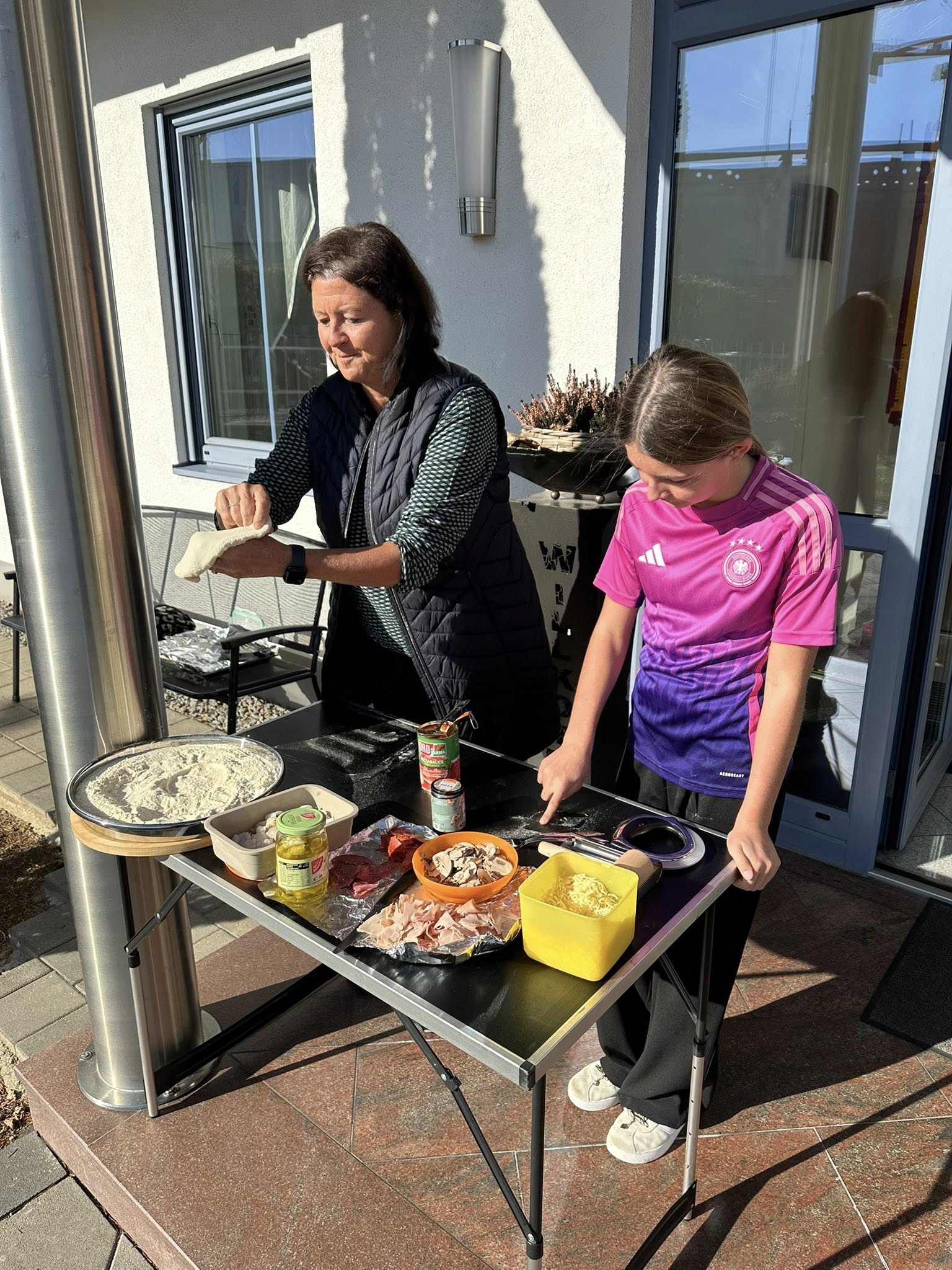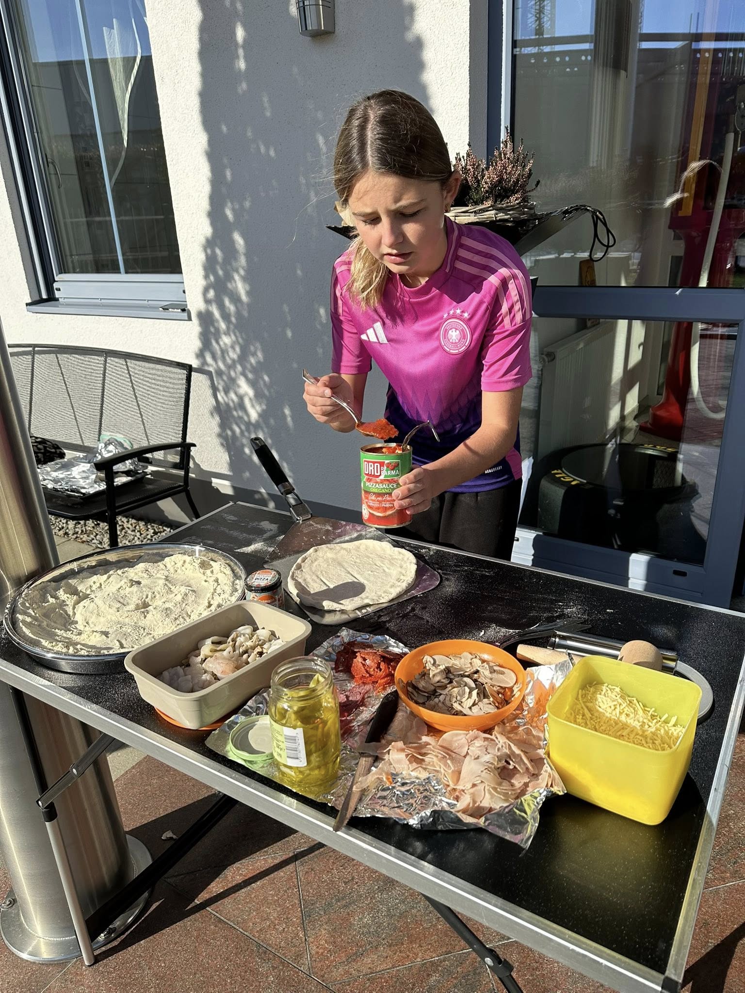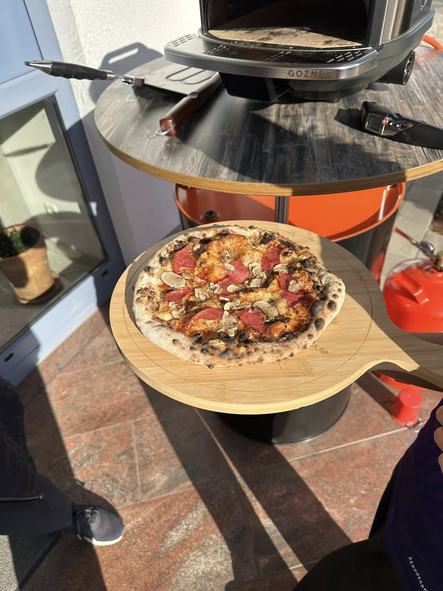 Heute Mittag haben wir bei schönstem Herbstwetter vor dem Büro leckere Pizza‘s selbst belegt und im Outdoor-Ofen gebacken.
