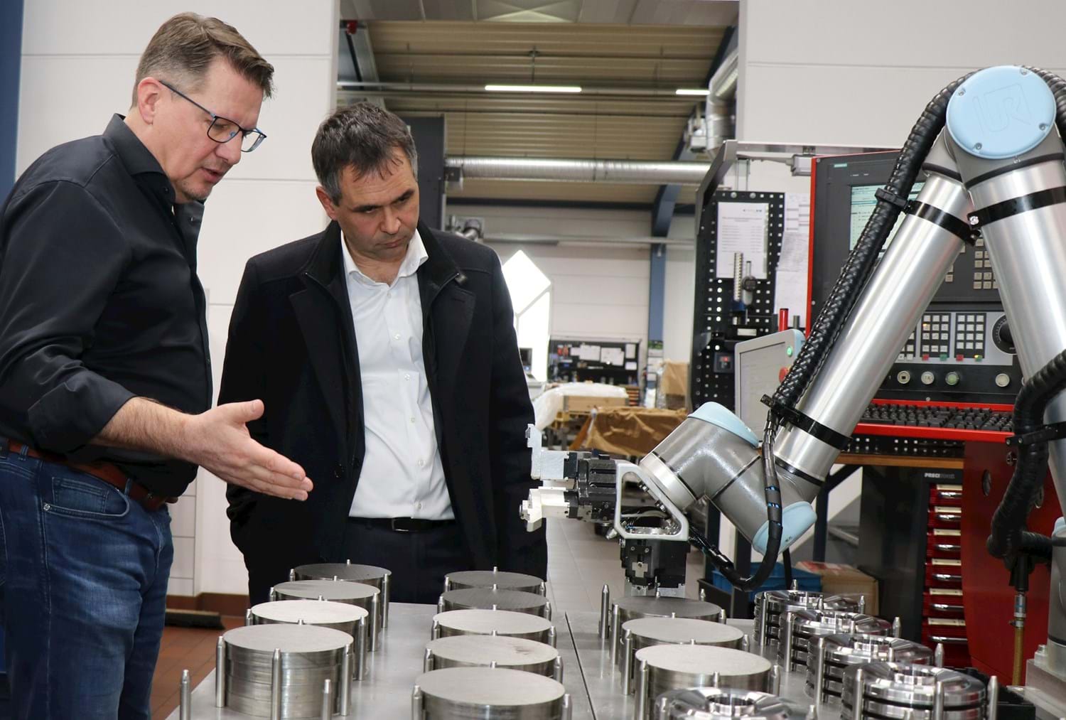 Die Firma Köppl Metalltechnik beschäftigt heute rund 40 Mitarbeiterinnen und Mitarbeiter und stellt in hochpräszisen Verfahren Metallbauteile für die verschiedensten Branchen her, wie Bernhard Köppl erklärte. Vor allem das computergesteuerte CNC-Fräsen und –Drehen gehört zu den Spezialgebieten der Firma. Bauteile werden in Aldersbach aber auch durch Sägen, Gleitschleifen, Sandstrahlen und Schweißen bearbeitet.